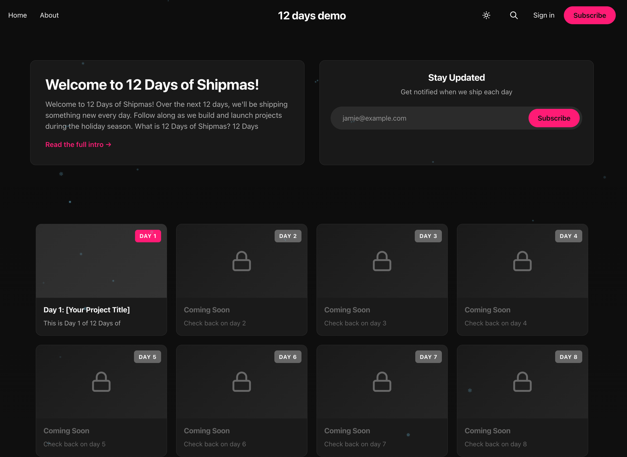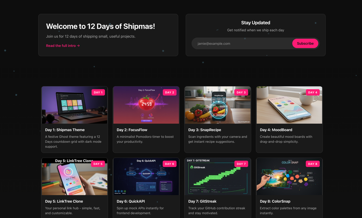 If you would like to join for the 12 days of shipmas, you can sign up for a ghost blog via magic pages here (affiliate) - free for 14 days with no credit card needed.